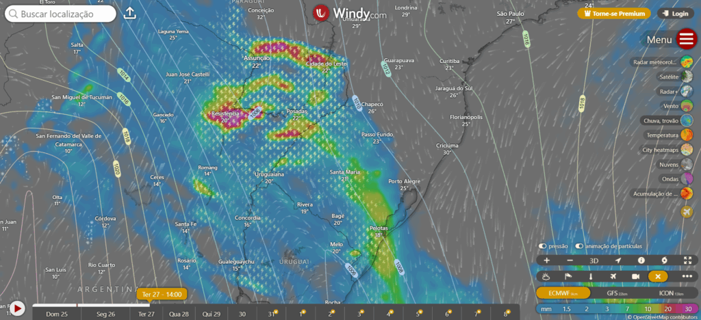 Deixo a simulação para a terça feira no sul do Brasil, do windy.com.