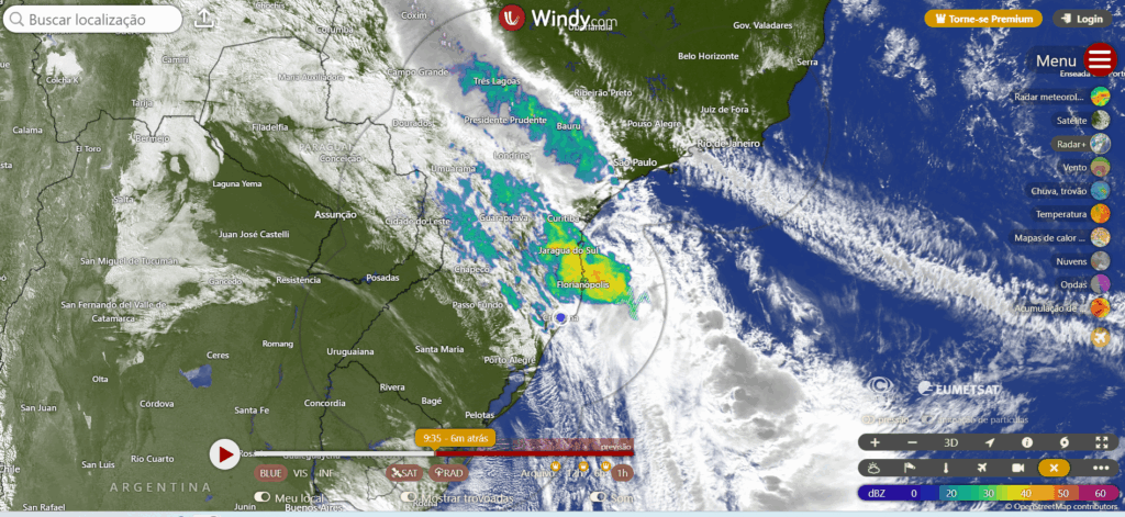 🌡️ Ver dados da Estação UrupemaVamos acompanhar como está a situação neste momento, na manhã de segunda feira no sul do Brasil, imagem de satélite e radar.
