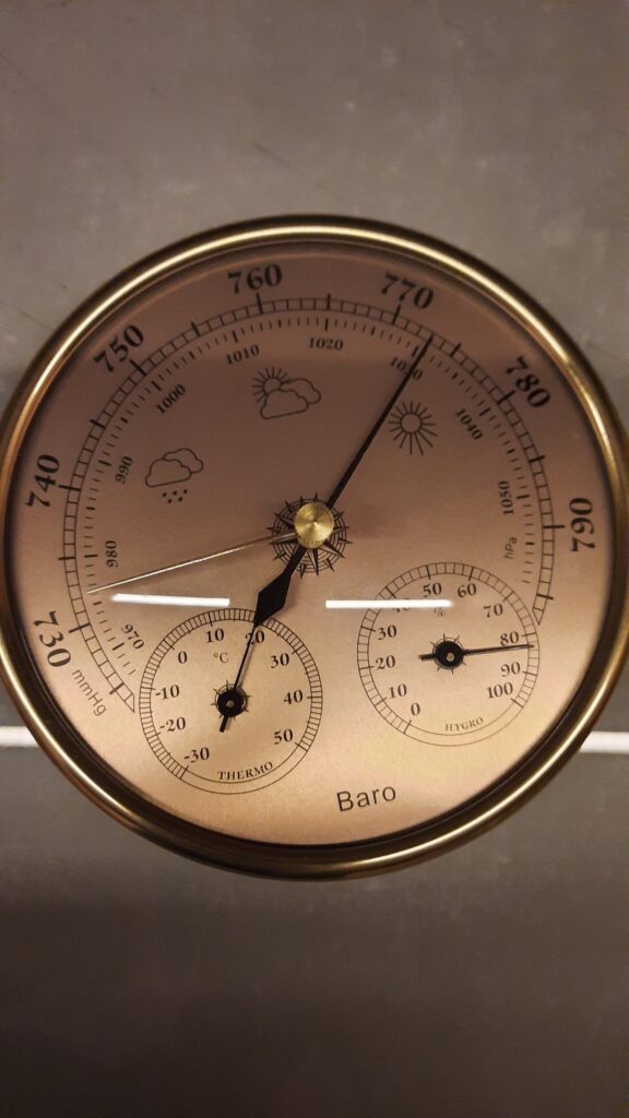 Abaixo mostro o barômetro analógico que está aqui em casa, já ajustado para corrigir até ao nível do mar.