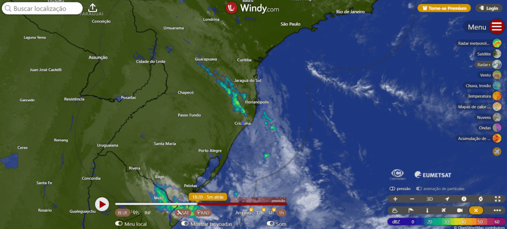 A imagem do satélite junto com o radar do sul do Brasil mostra a frente fria já indo para o norte, Criciúma já teve chuva e de agora em diante terá o tempo melhorando. A chuva registrada em Criciúma foi de pouca intensidade, nem chegou em 1mm nesta tarde. Frente fria de muita fraca intensidade no sul catarinense.