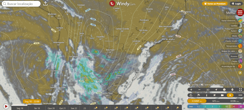 Situação na noite de Segunda feira no sul do Brasil