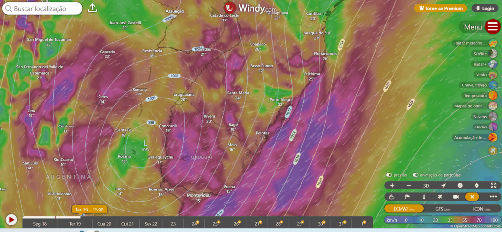 Ciclone Extratropical chega na costa do Uruguay e interfere no nosso tempo! Ventania a vista nesta terça e quarta no litoral do sul do Brasil.