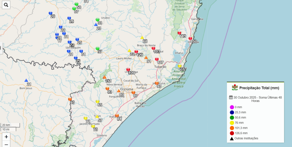 Olha, estamos já no dia 30 de Outubro de 2025, todos estão percebendo estes dias quase de inverno no litoral Catarinense. Essa chuvarada toda, depois já vou deixar aqui os dados das precipitações em Santa Catarina. Situação péssima para a agricultura, principalmente a lavoura do arroz aqui de Santa Catarina. Pelos dados teremos a sexta feria úmida ainda no litoral catarinense, no RS a chuva não está chegando tanto, tem dias mais ensolarados até. Vamos acompanhar o artigo e todas estas mudanças do sul do Brasil!